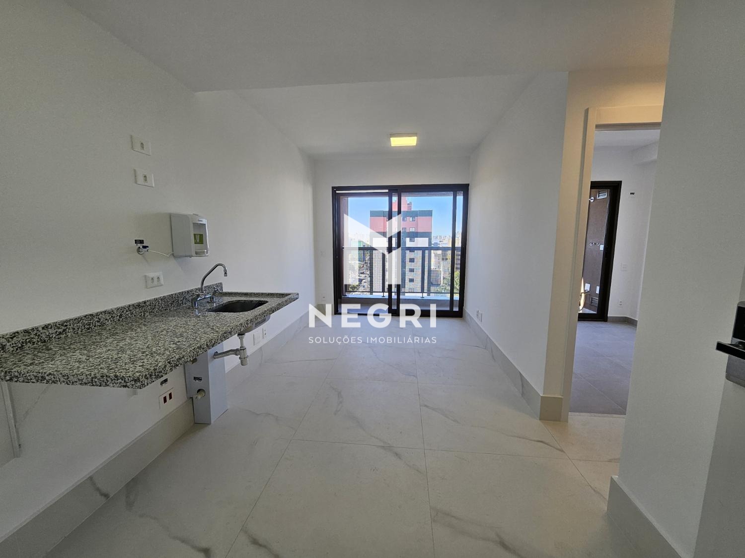 Apartamento de 36m², andar alto, com sol da manhã e vista livre. Unidade com piso instalado, banheiro com box de blindex, ampla varanda e pontos para ar-condicionado já preparados.