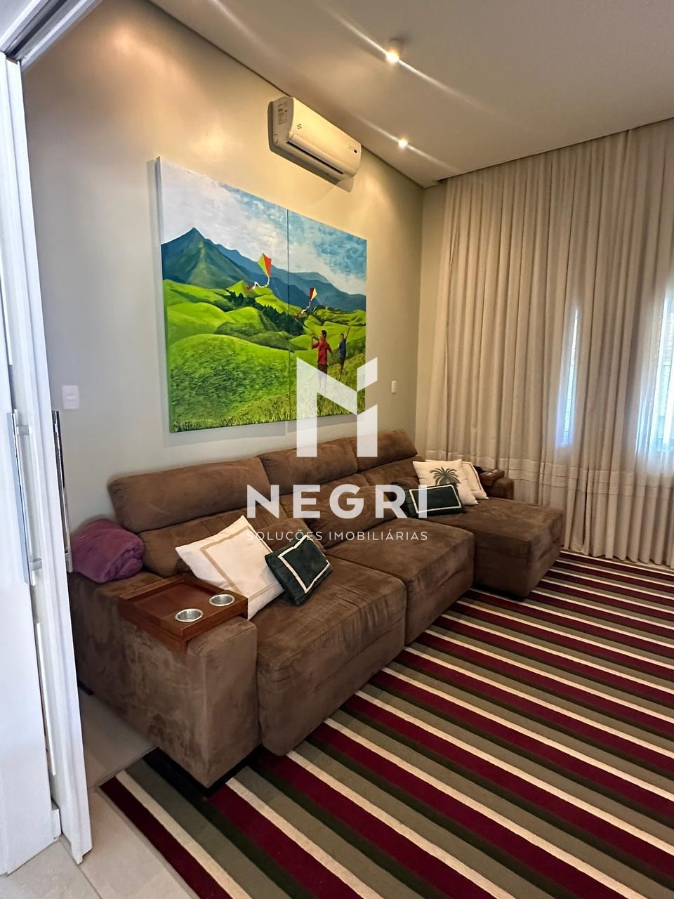 Sala de TV aconchegante e bem iluminada
