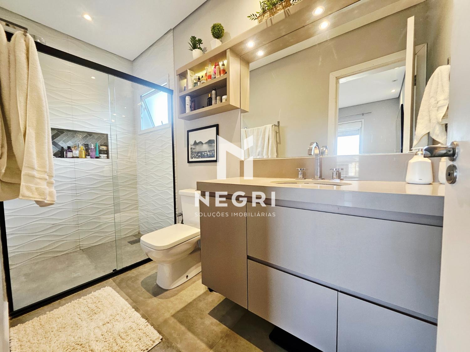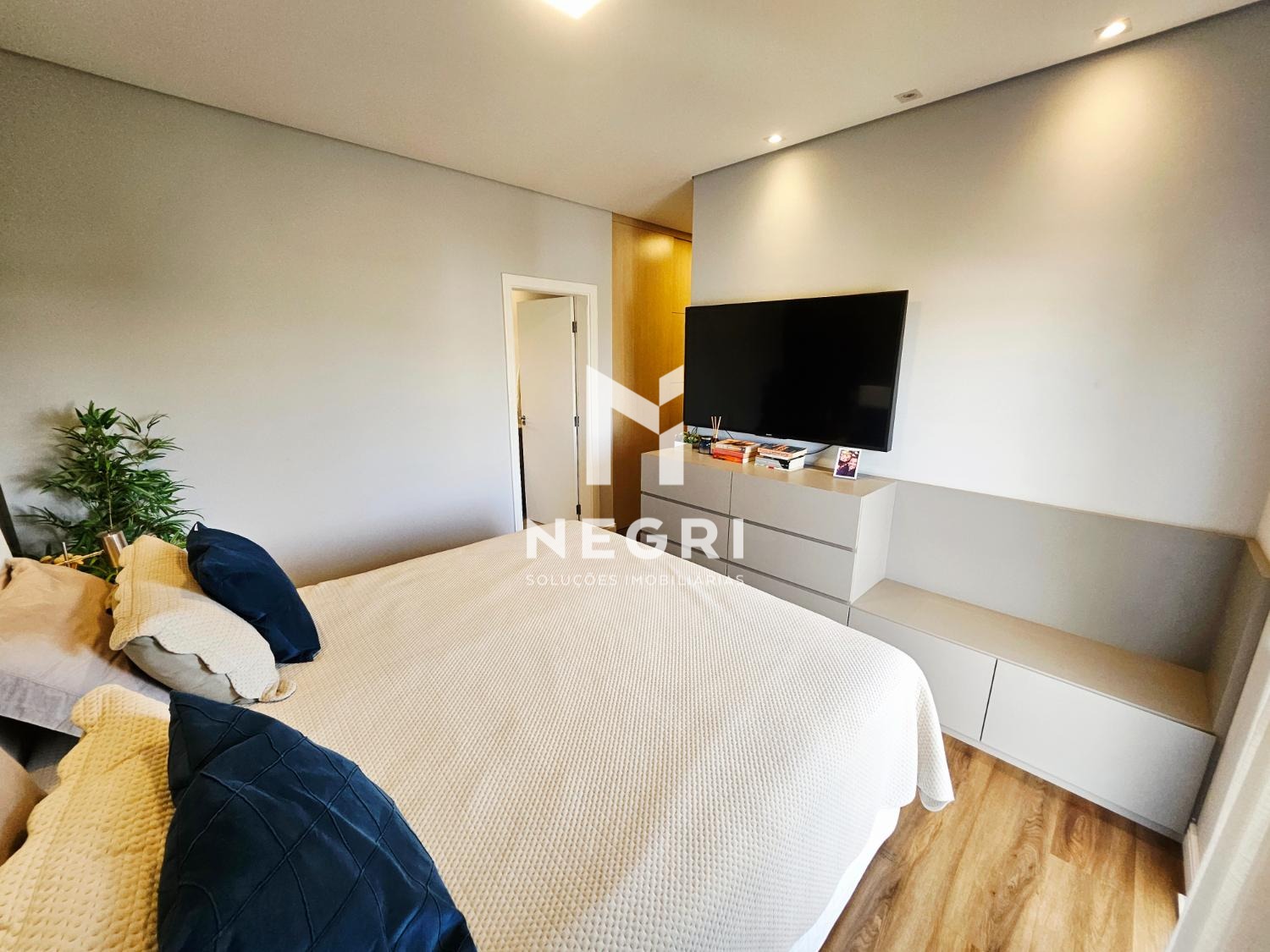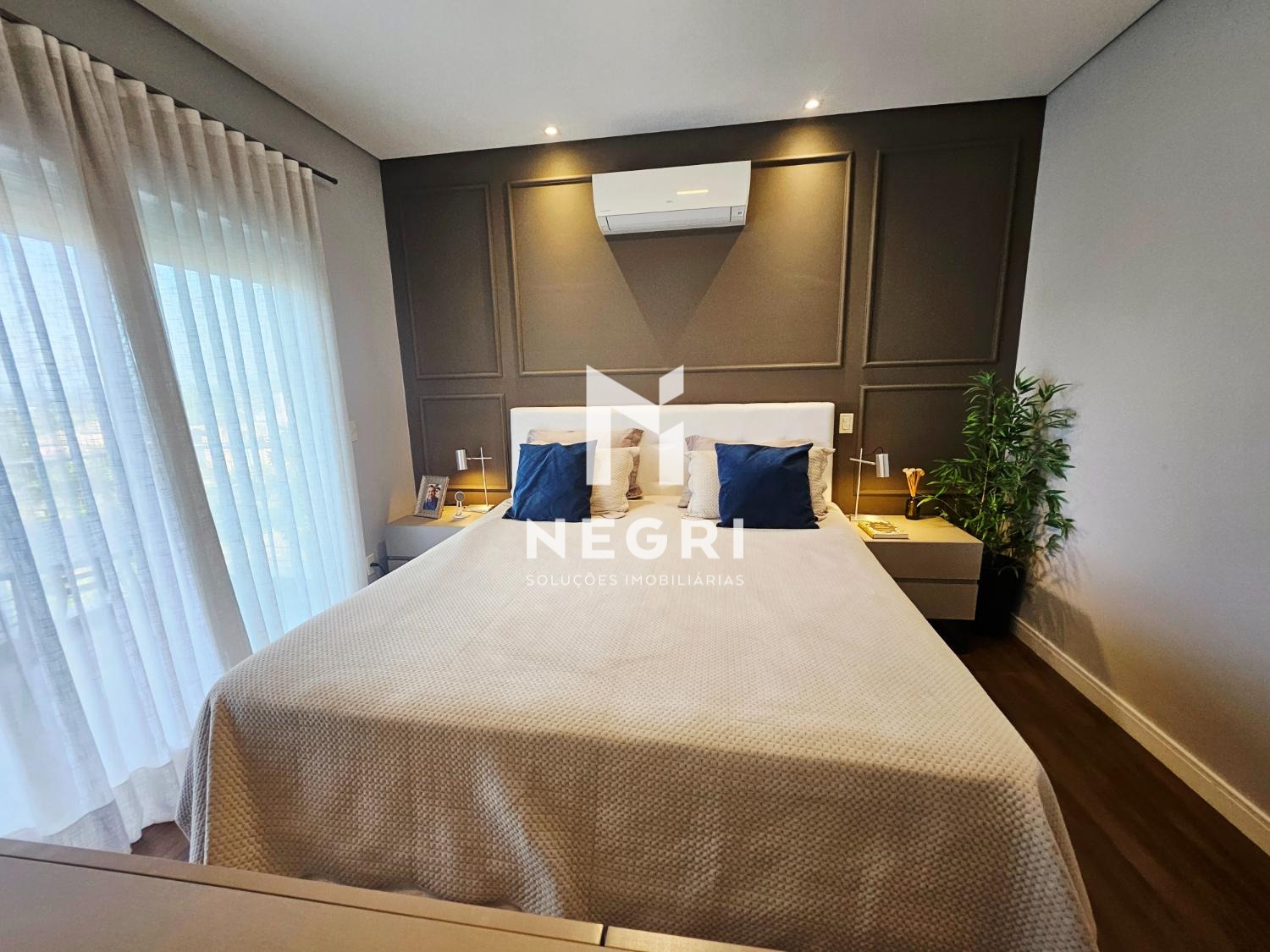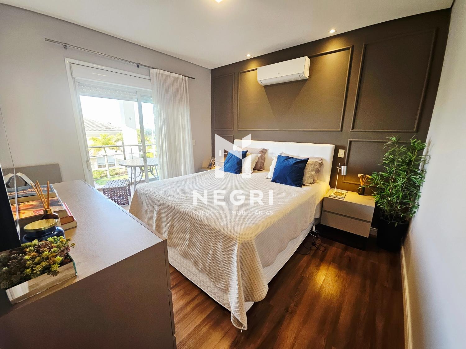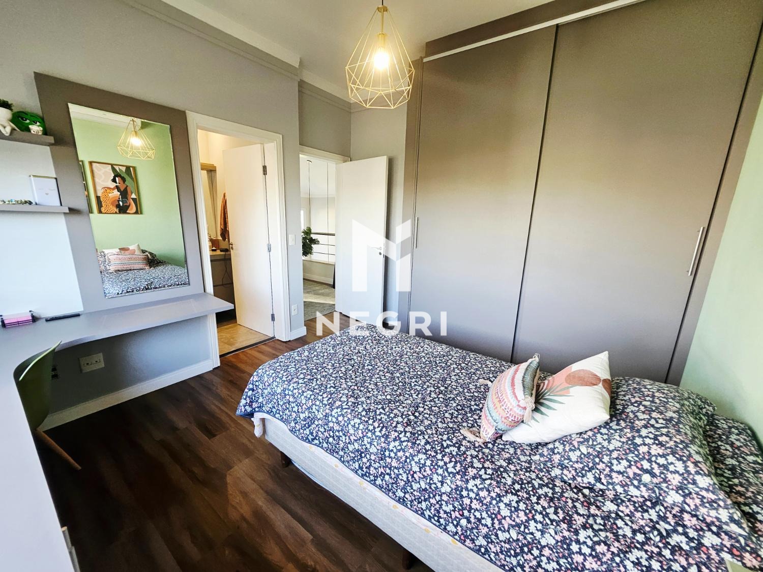 no pavimento superior, a casa conta com 4 suítes, todas com armários planejados. a suíte master se destaca pelo closet e pela varanda com vista definitiva, trazendo ainda mais conforto e exclusividade.