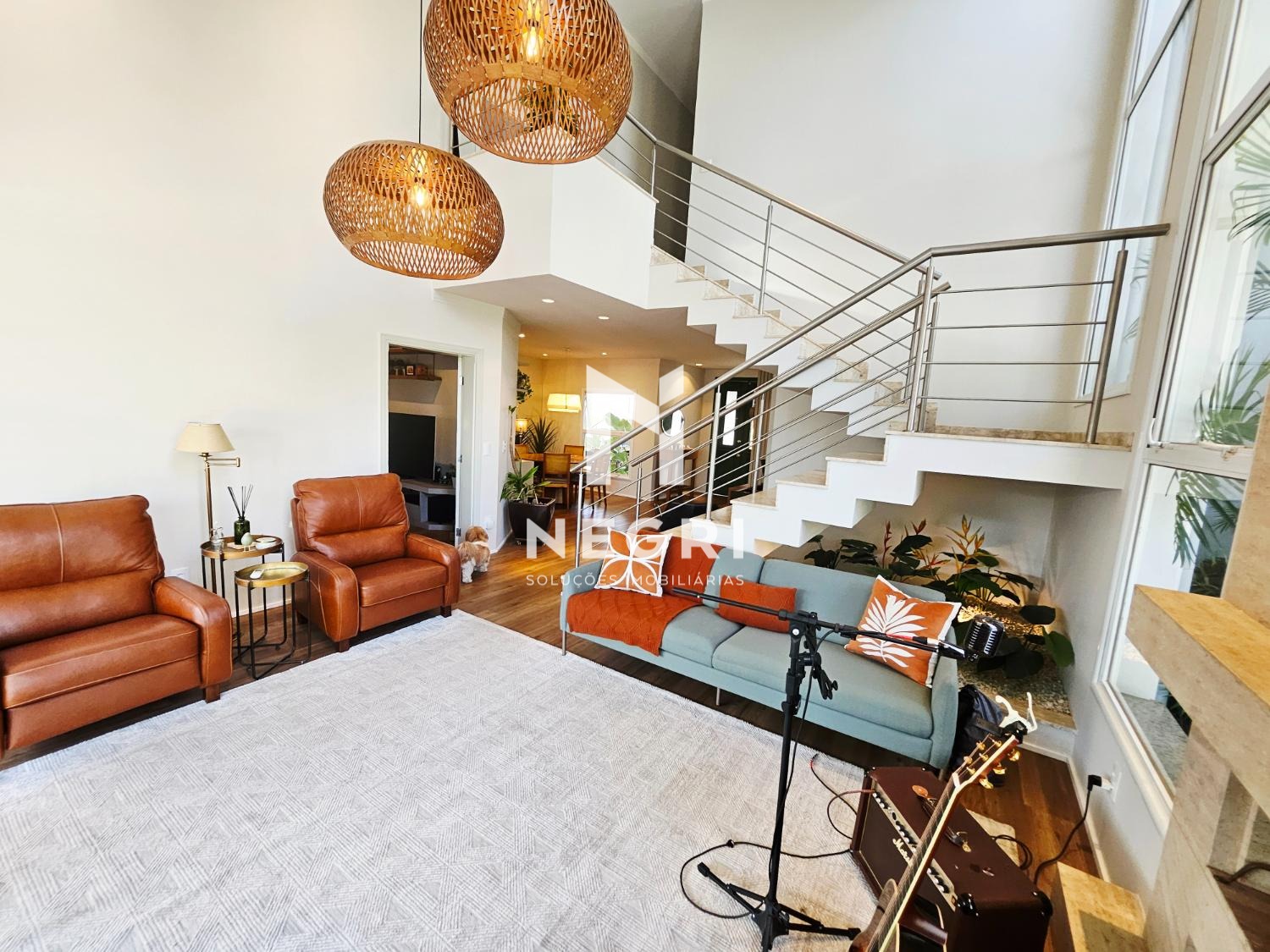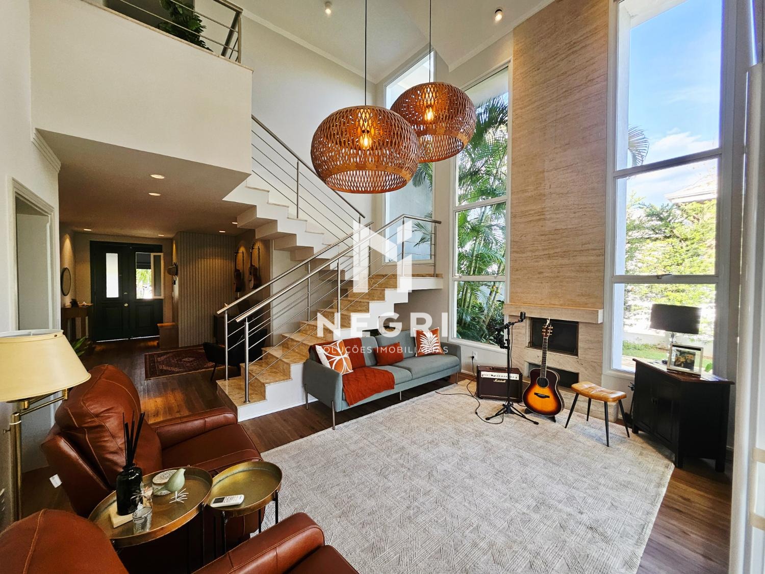 no piso térreo, os ambientes sociais impressionam pelo espaço e pela luminosidade. ampla sala de estar com pé-direito duplo e lareira, integrada à sala de jantar, criando um ambiente sofisticado e acolhedor. home theater independente, ideal para momentos de lazer com privacidade. a suíte master térrea é generosa, com closet e banheiro espaçoso equipado com hidromassagem. a cozinha foi totalmente reformada, é funcional e moderna, com despensa, além de área de serviço interna e área de serviço externa independente.