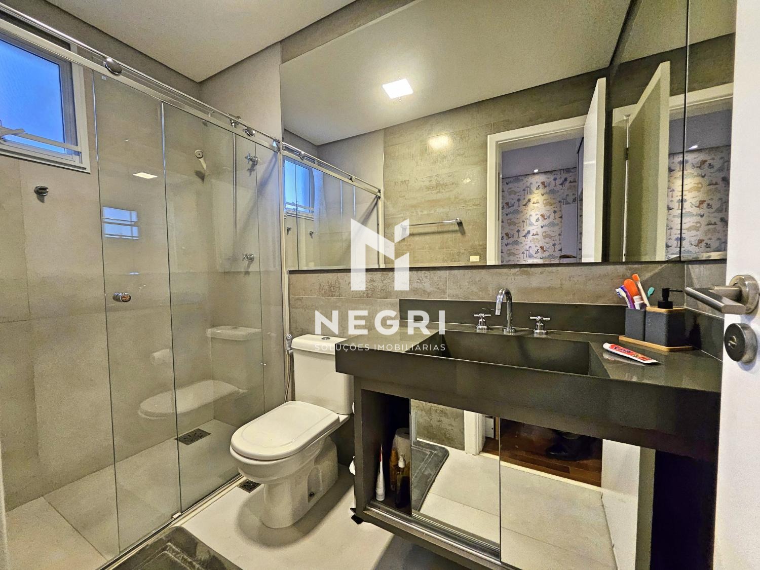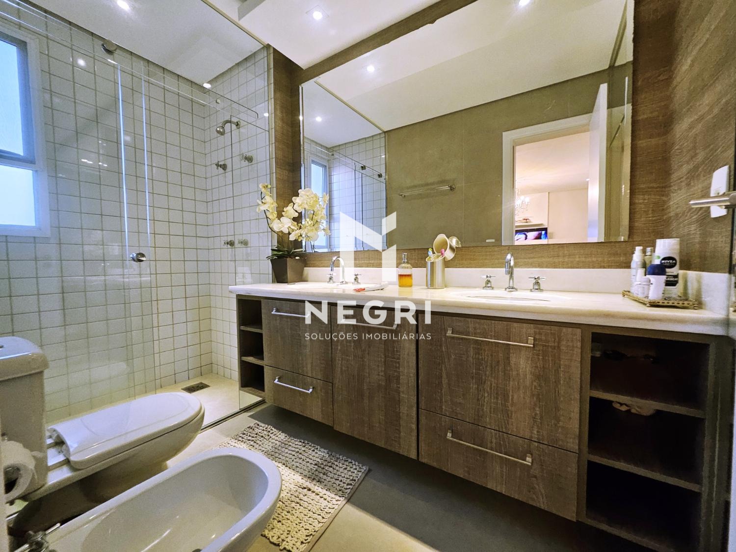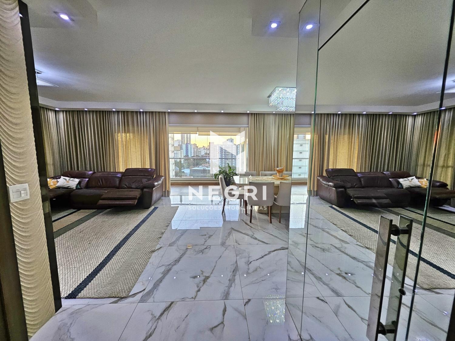Com 246m² de área útil, o imóvel foi totalmente reformado, com acabamentos de alto padrão e uma planta inteligente que valoriza a integração dos ambientes.