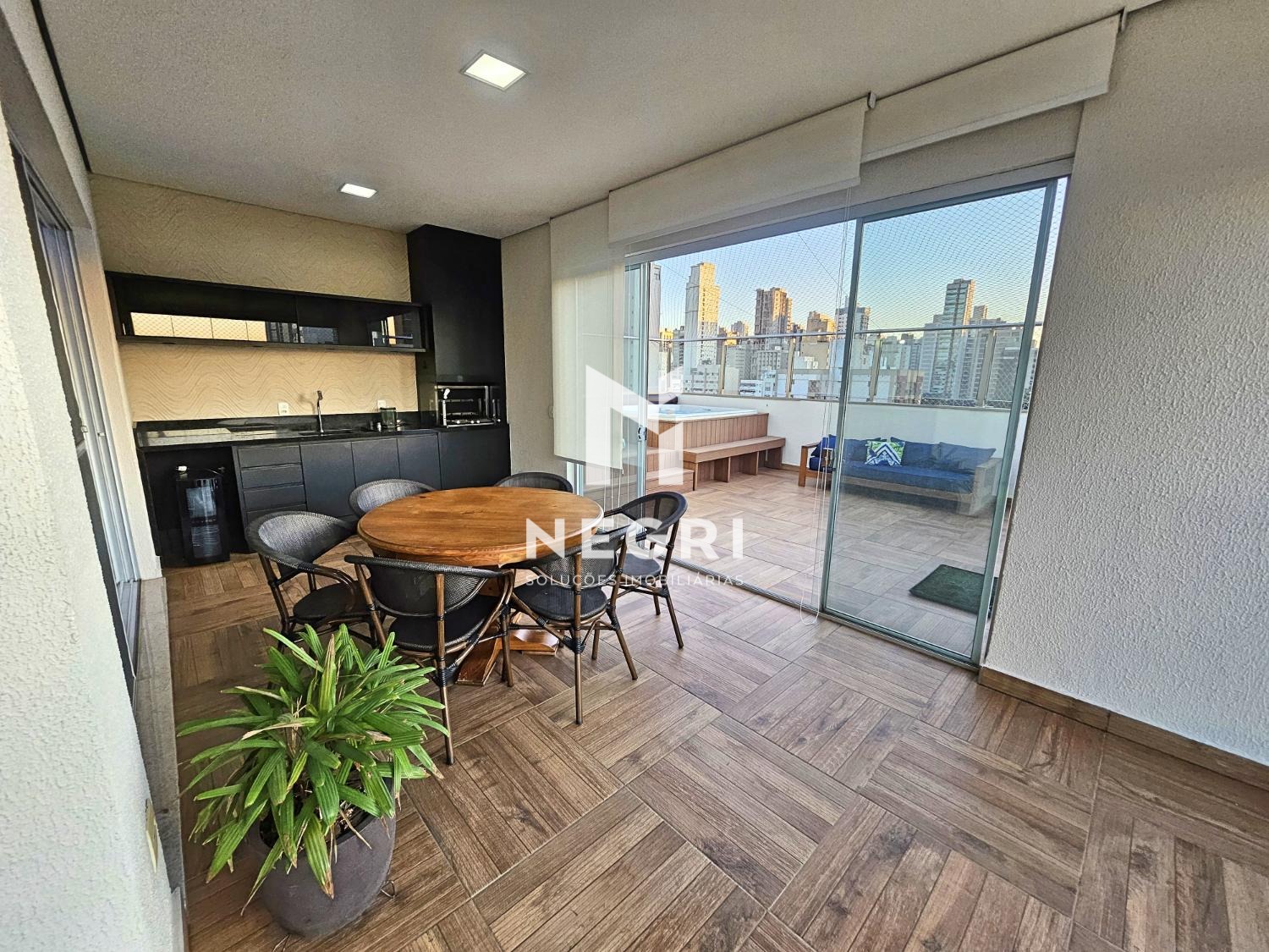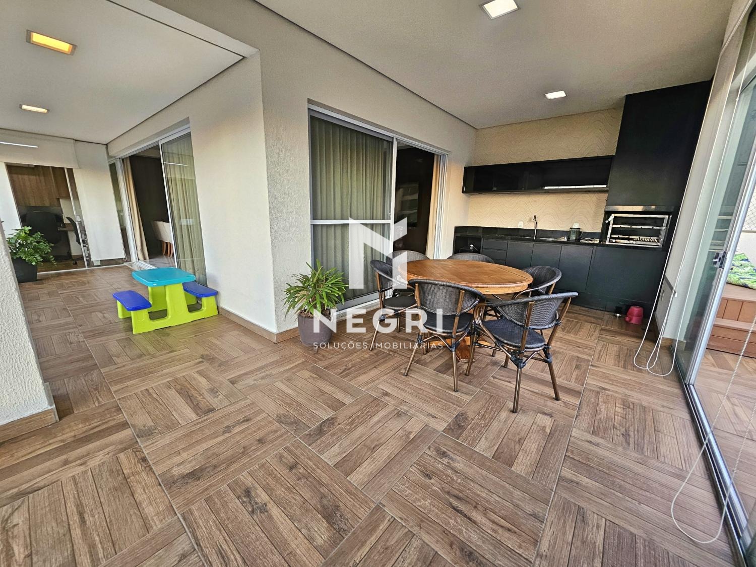 Espaçosa varanda integrada ao espaço gourmet