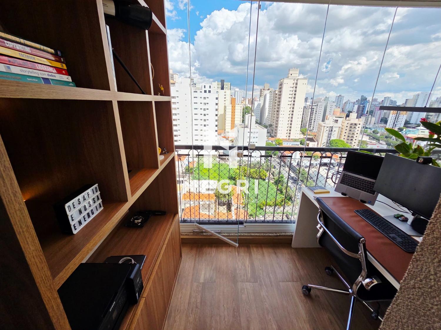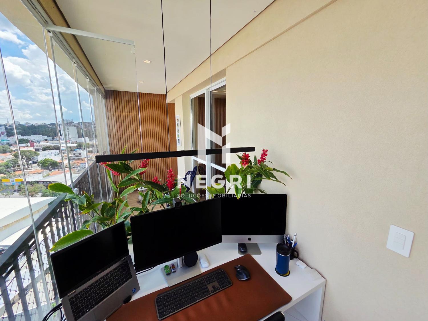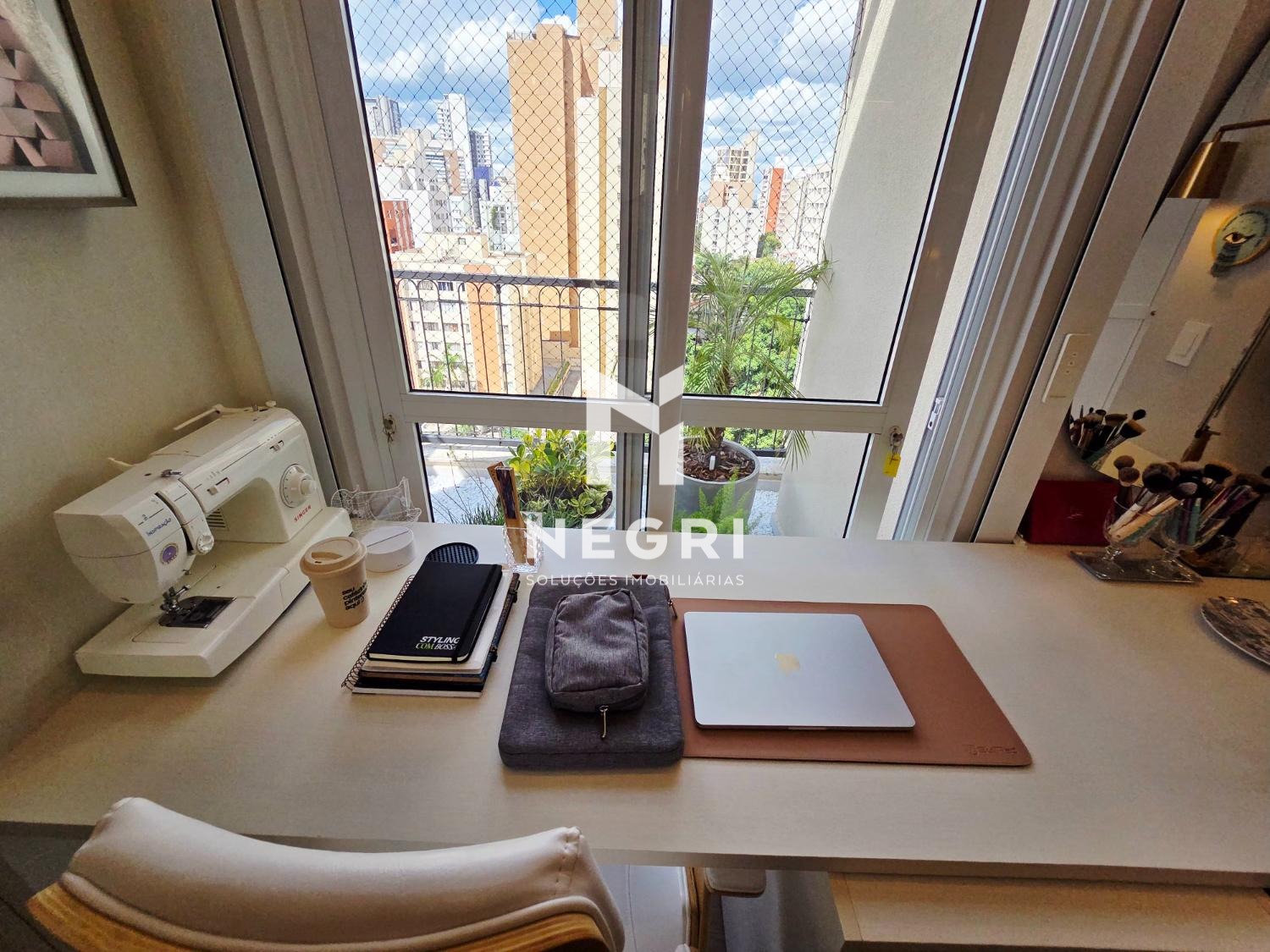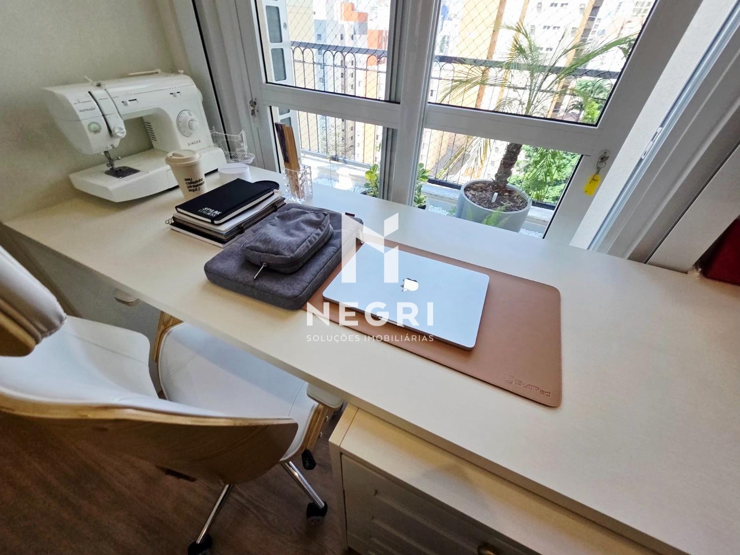 O imóvel conta ainda com um escritório independente, extremamente iluminado — ideal para quem valoriza produtividade com qualidade de vida.