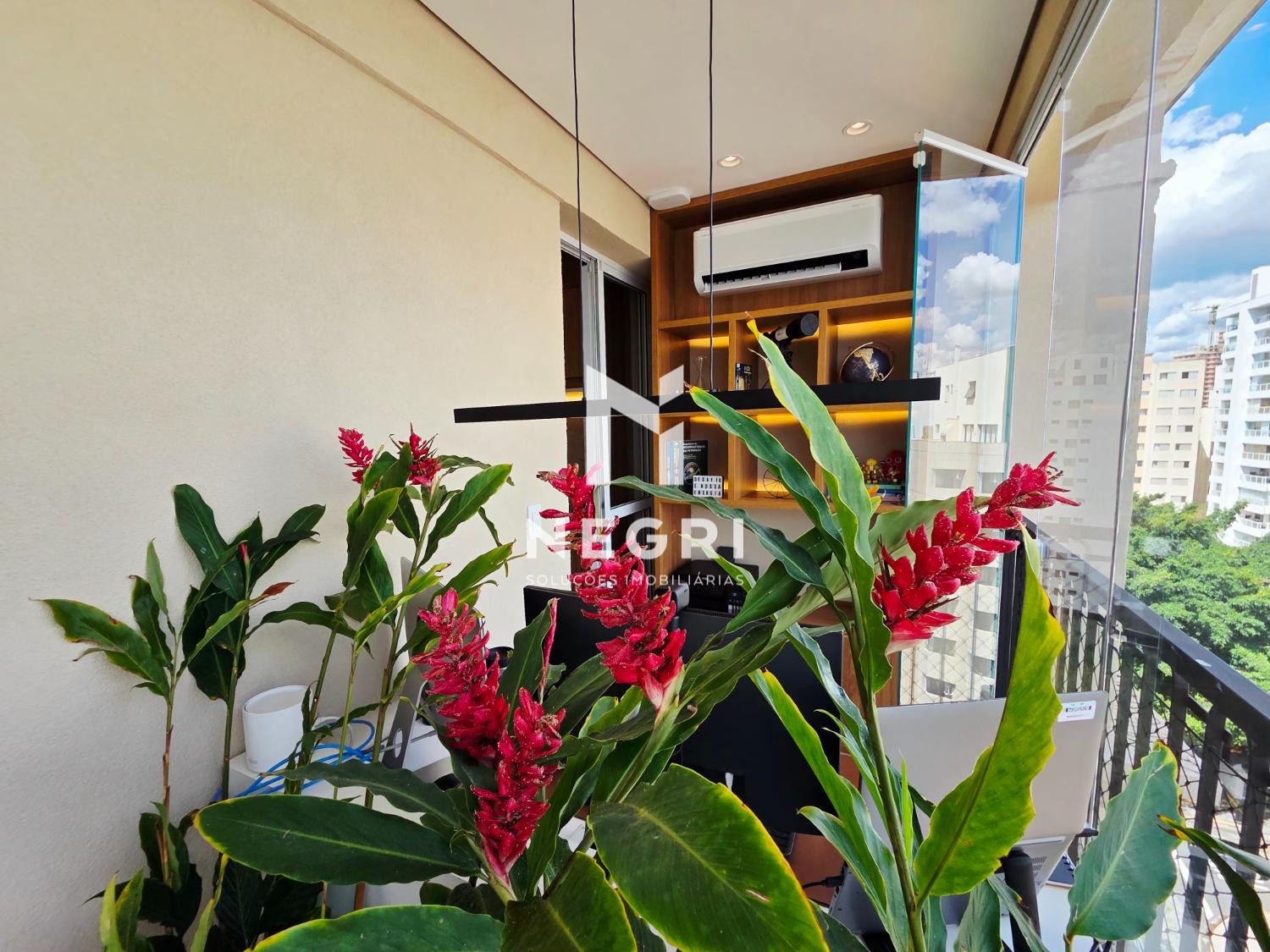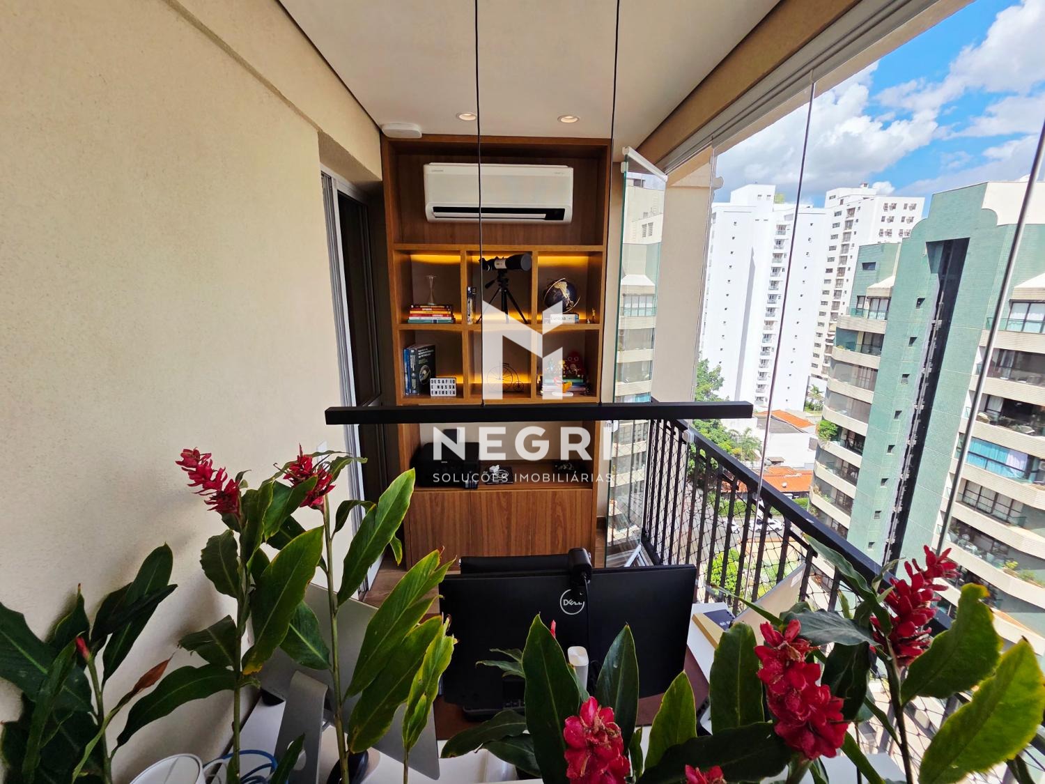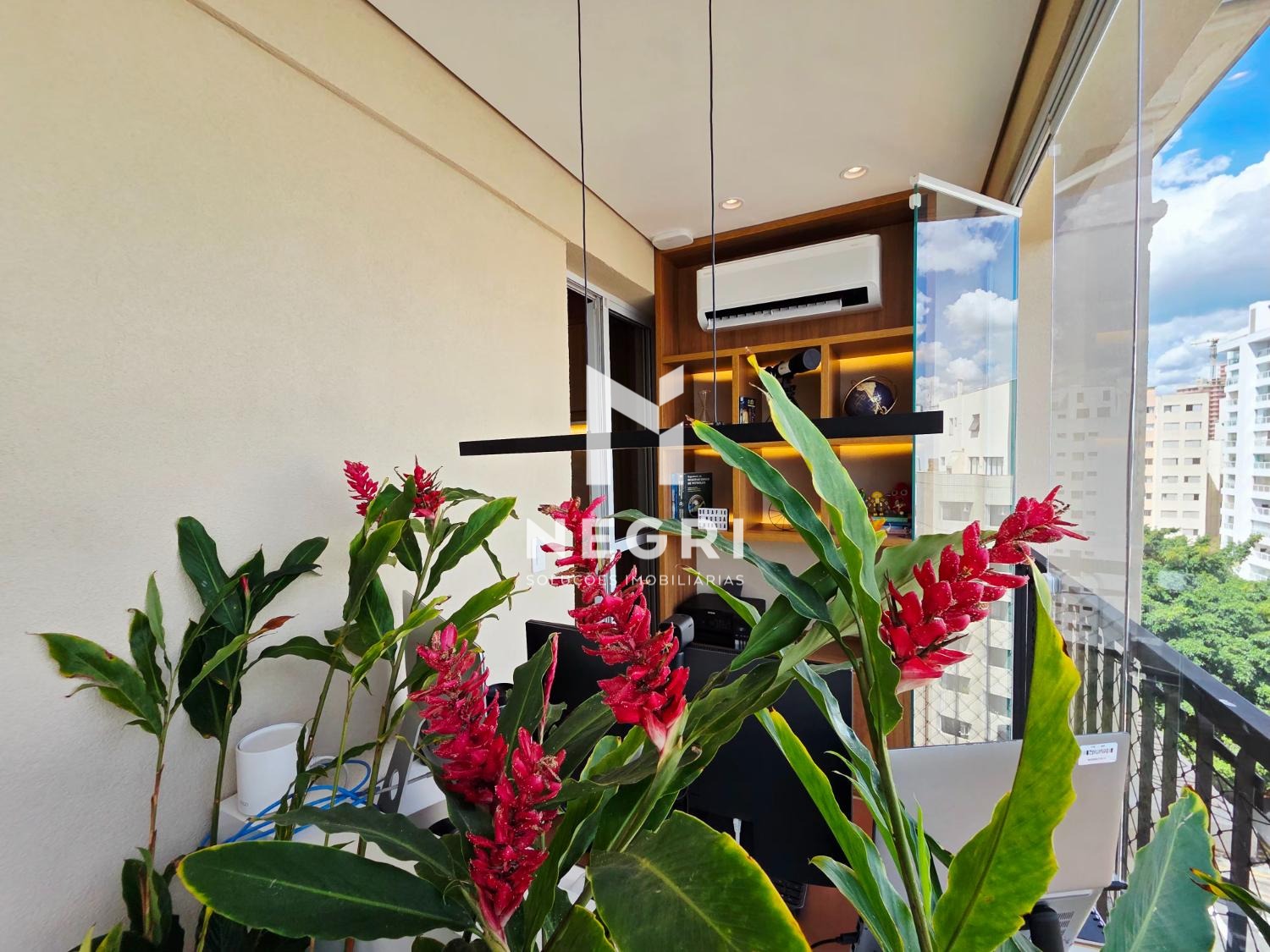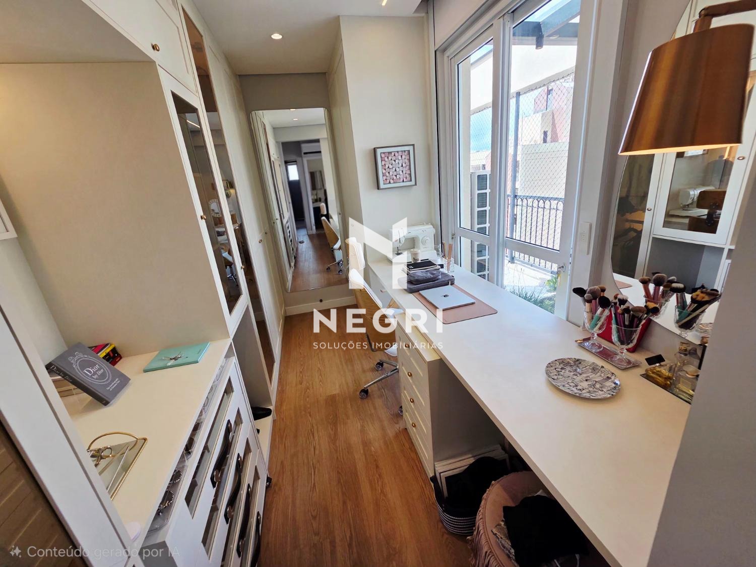 O imóvel conta ainda com um escritório independente, extremamente iluminado — ideal para quem valoriza produtividade com qualidade de vida.